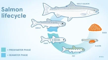 Post-smolt refers to a salmon that has been transferred to saltwater and has begun its growth phase in sea pens or ocean farms.