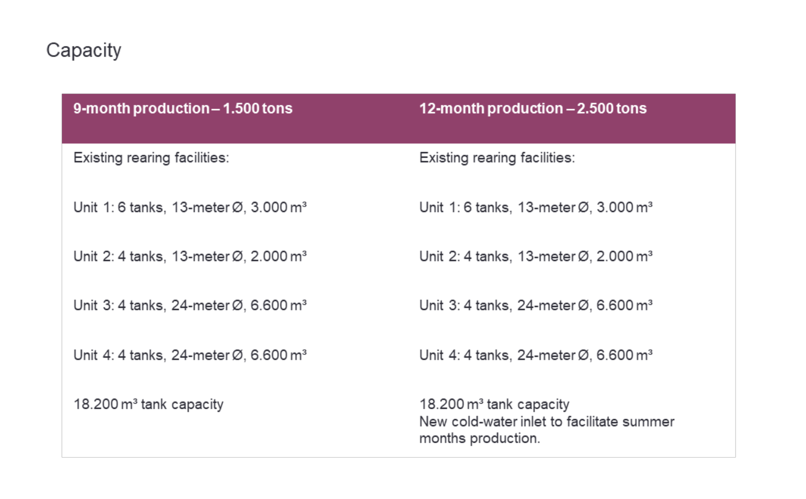 Higher Lingan sea water temperature in summer months to be regulated through a new water inlet tunnel, bringing colder water into the farm (part of investment plan).